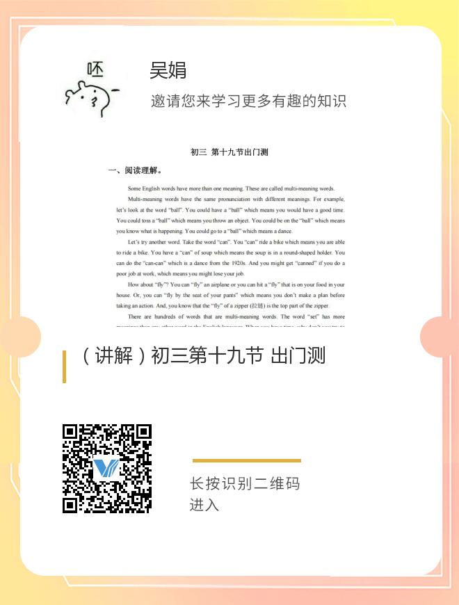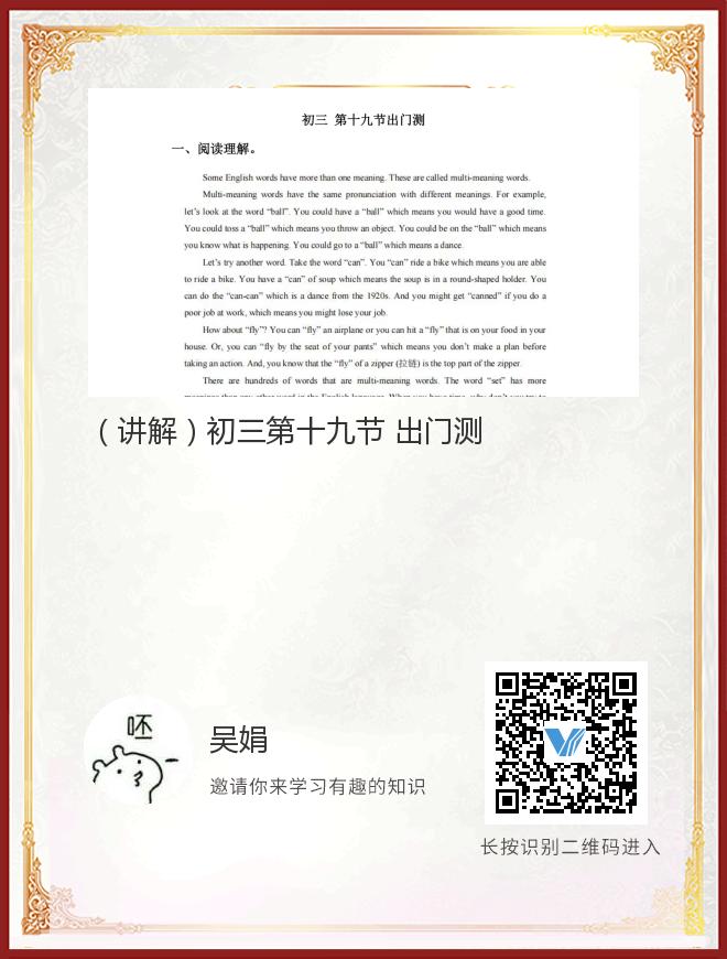 (讲解)初三第十九节 出门测