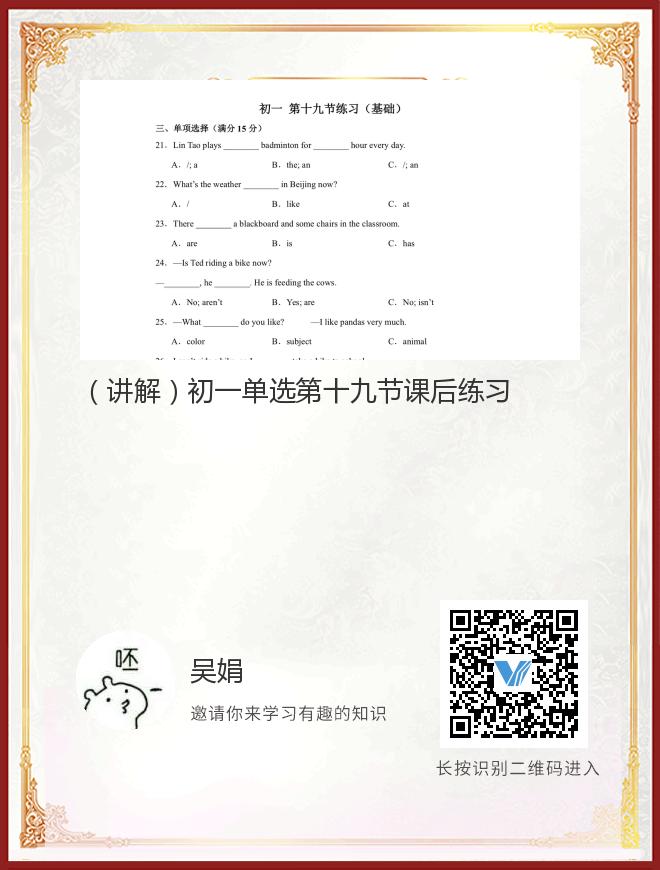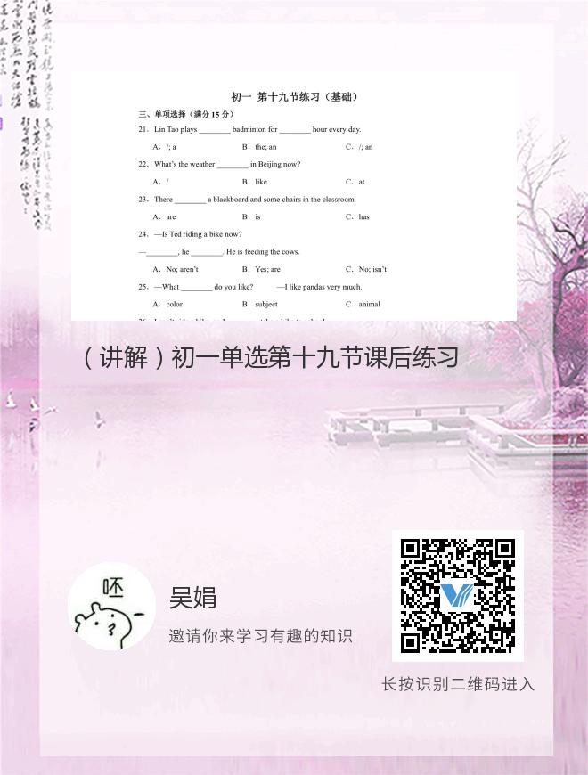 正在播放:(讲解)初一单选第十九节课后练习