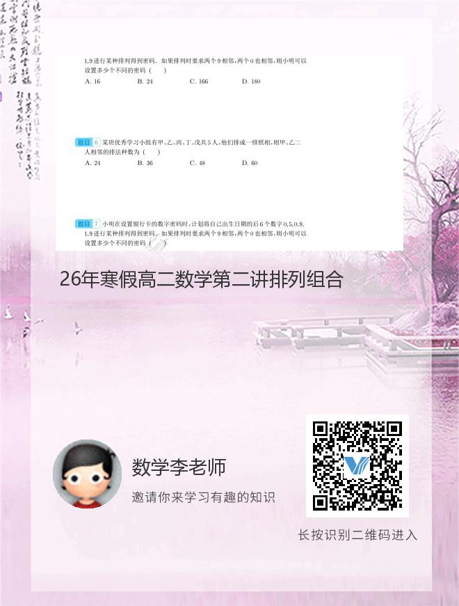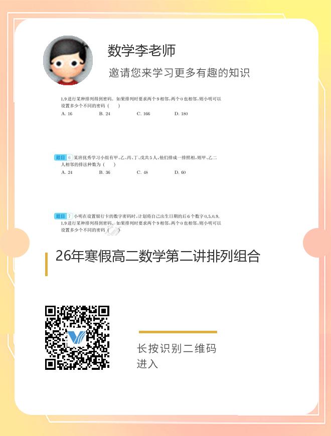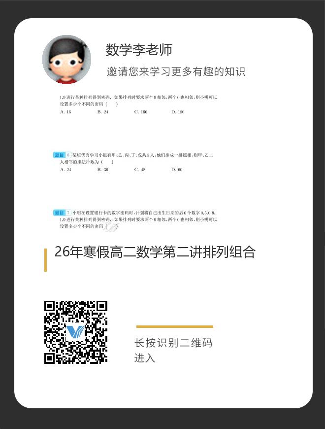 正在播放:26年寒假高二数学第二讲排列组合