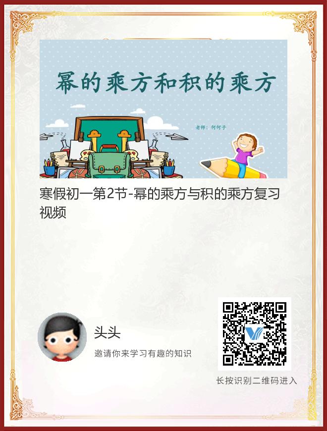 寒假初一第2节-幂的乘方与积的乘方复习视频