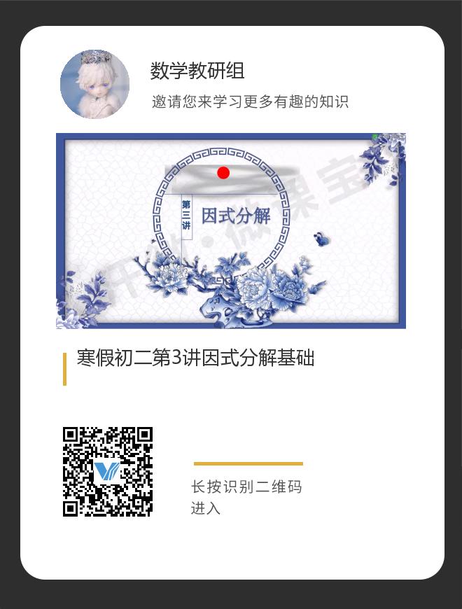 正在播放:寒假初二第3讲因式分解基础