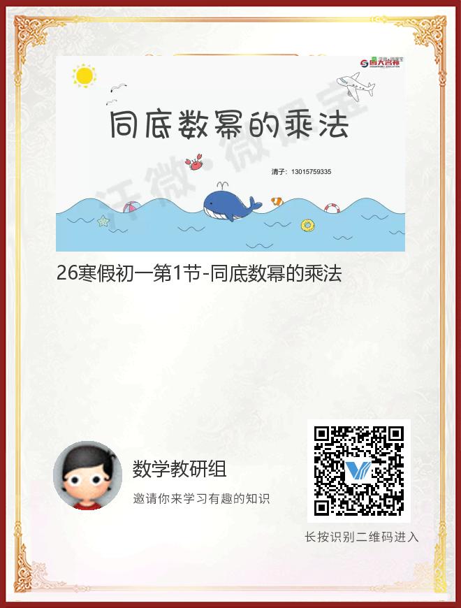 正在播放:26寒假初一第1节-同底数幂的乘法