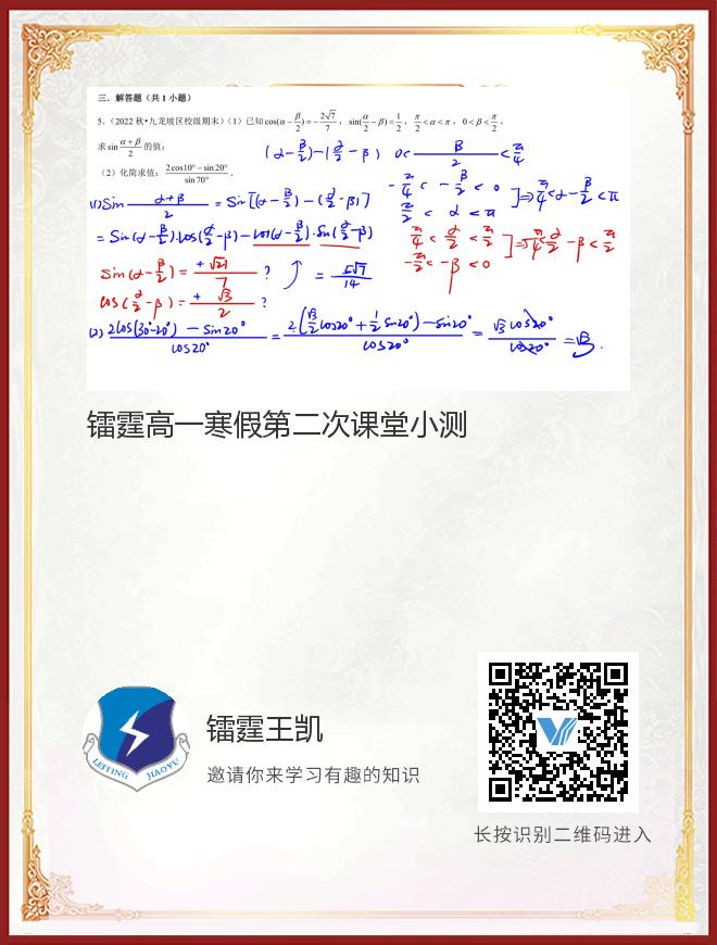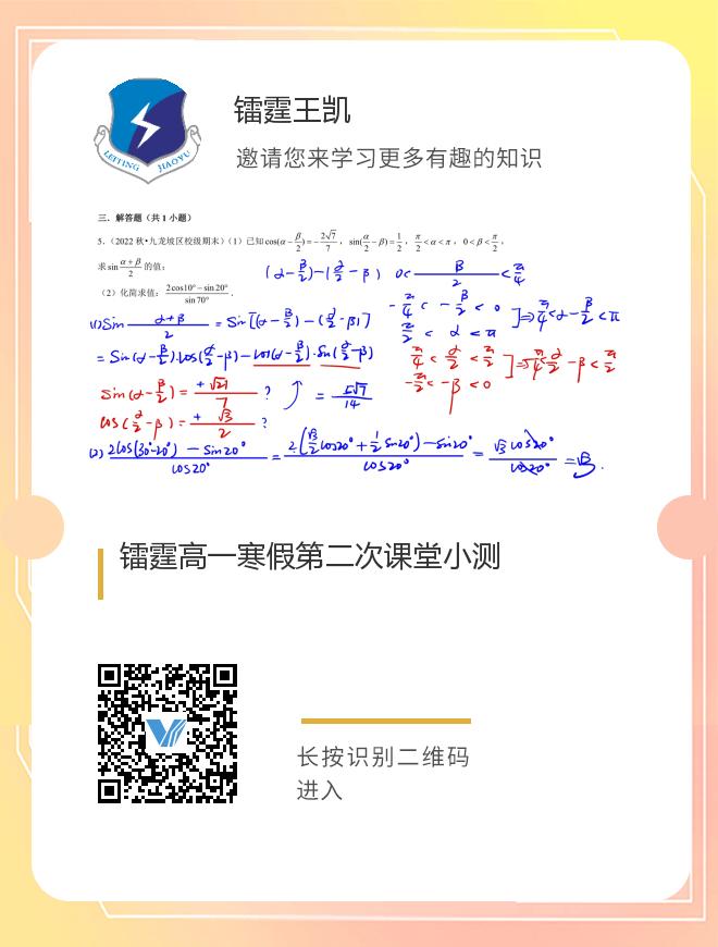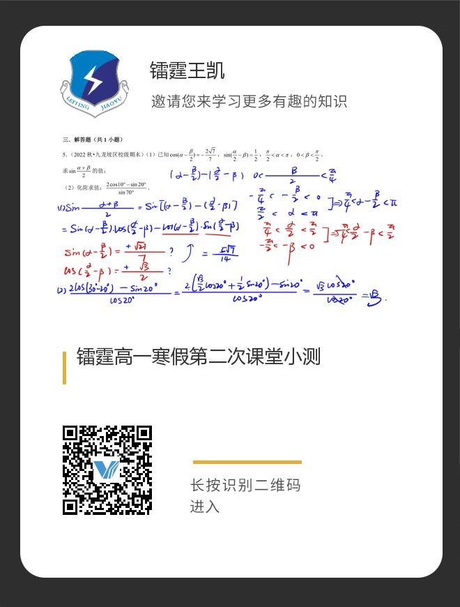 镭霆高一寒假第二次课堂小测