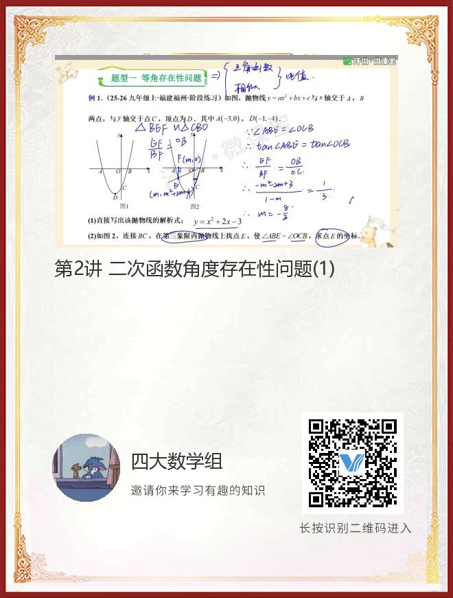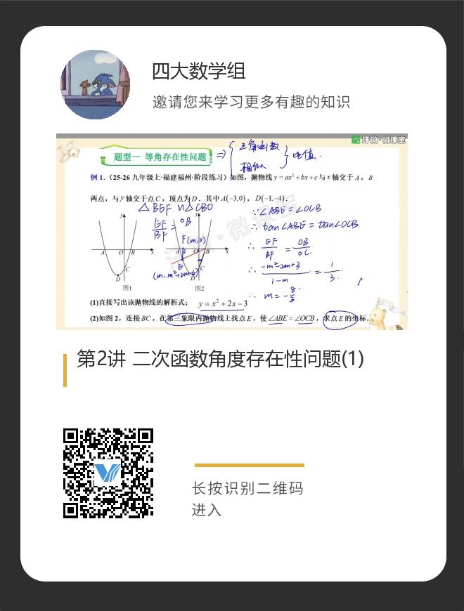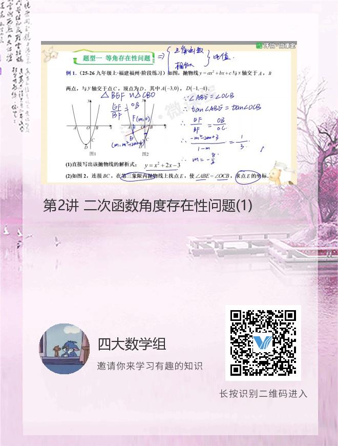 正在播放:第2讲 二次函数角度存在性问题(1)