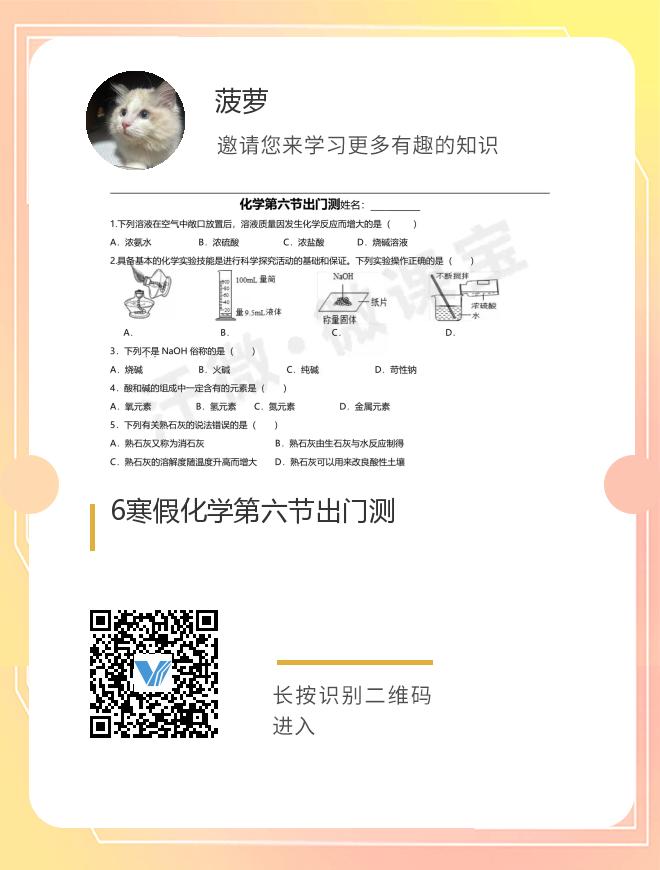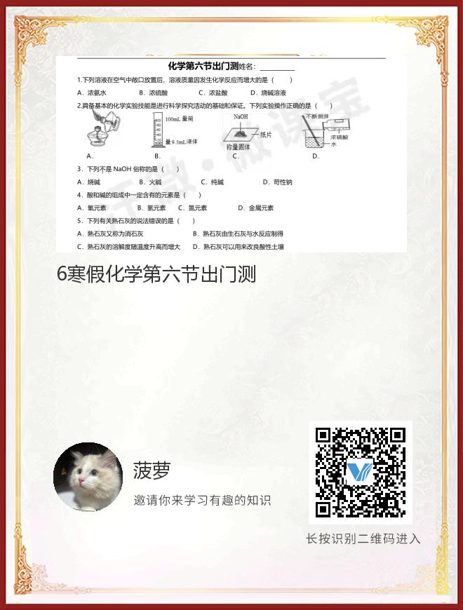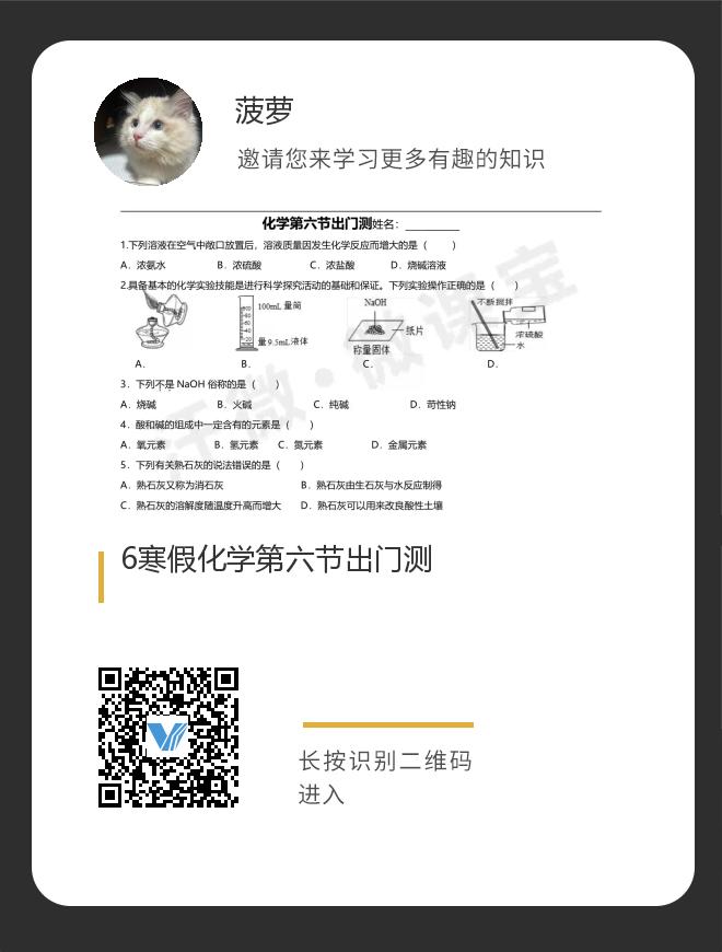6寒假化学第六节出门测