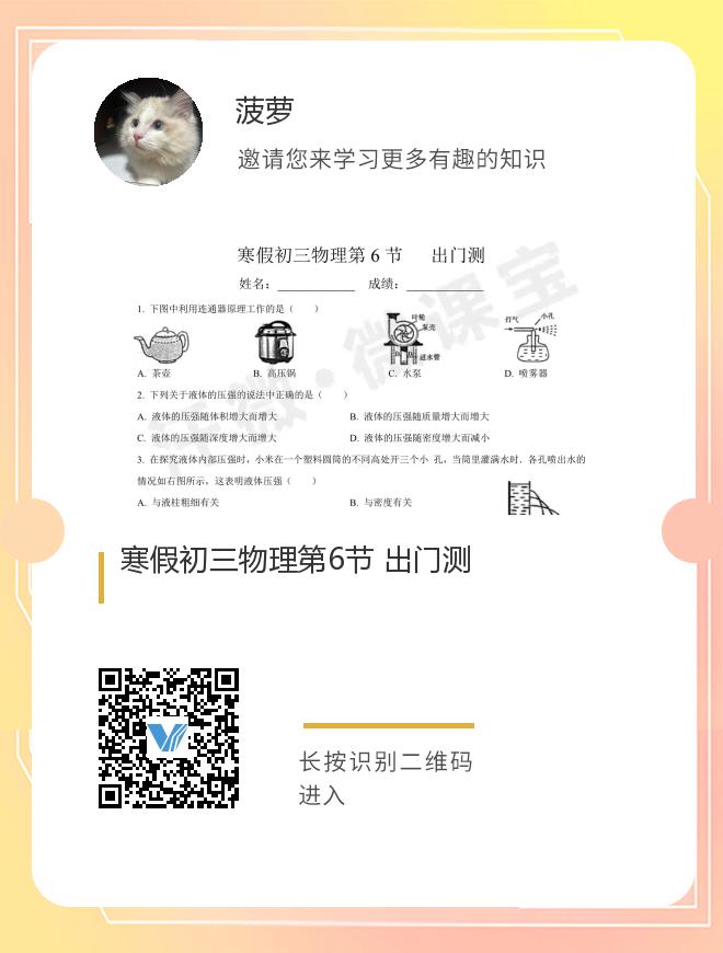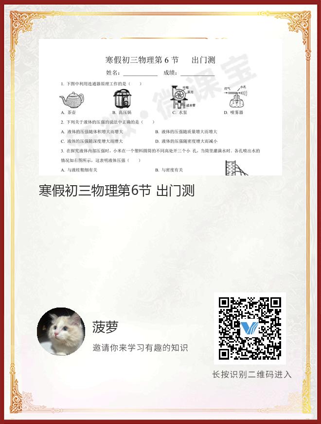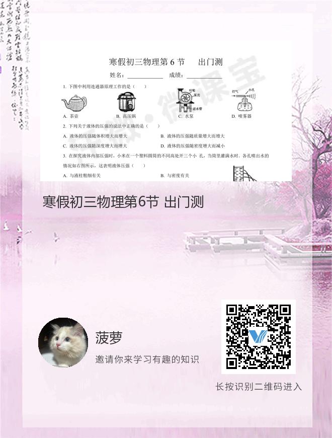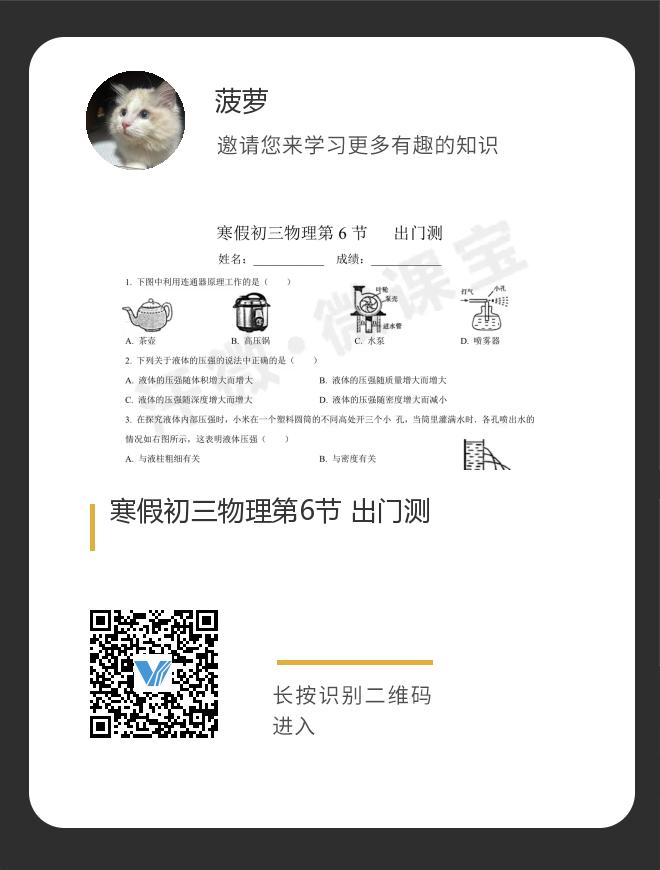 寒假初三物理第6节 出门测