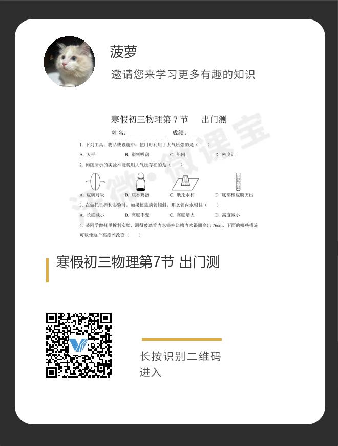 寒假初三物理第7节 出门测