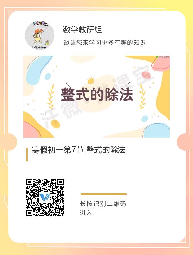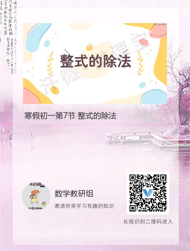 正在播放:寒假初一第7节 整式的除法