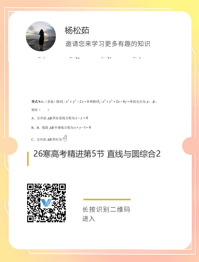 正在播放:26寒高考精进第5节 直线与圆综合2