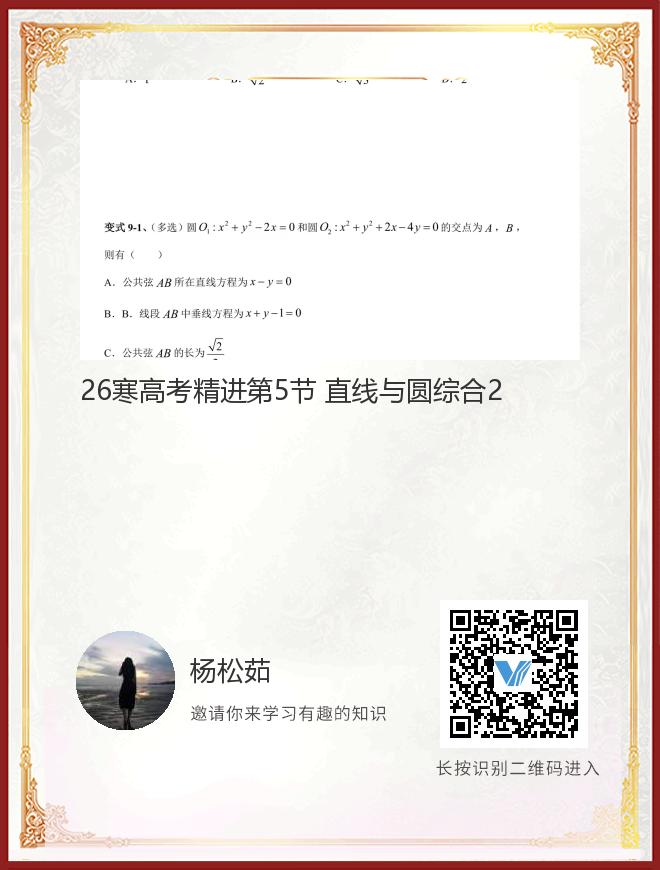 26寒高考精进第5节 直线与圆综合2