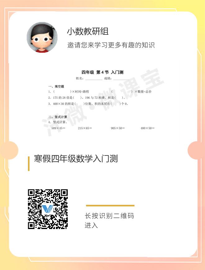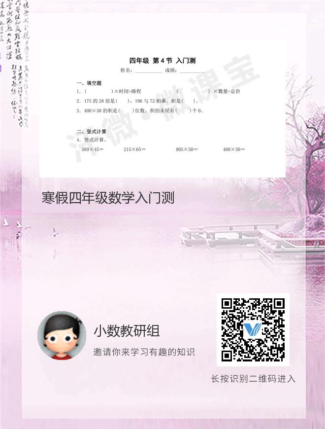 寒假四年级数学入门测