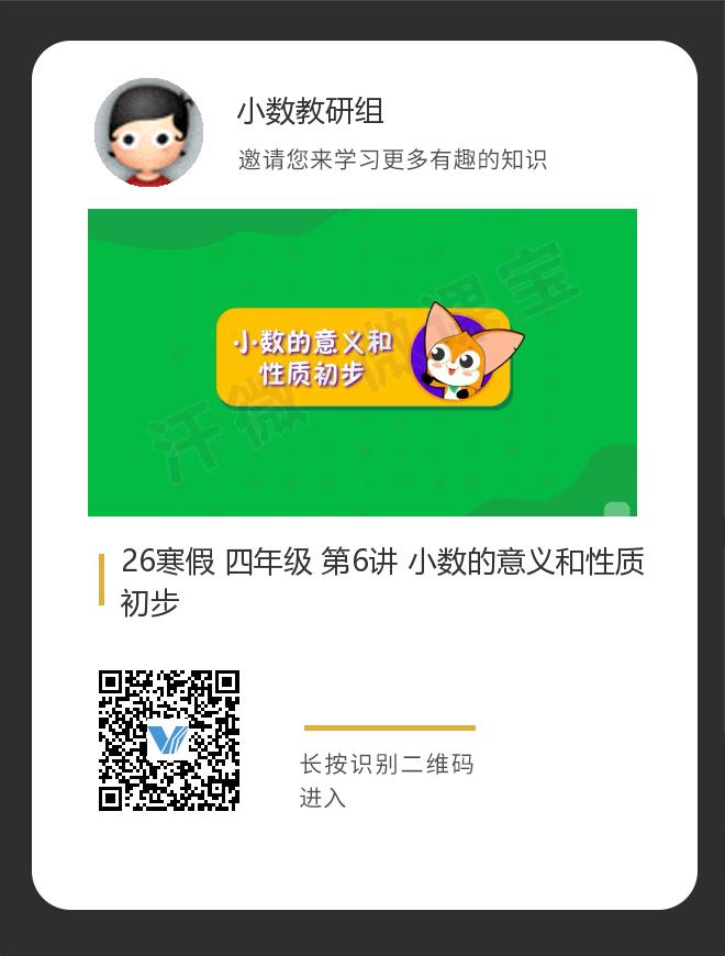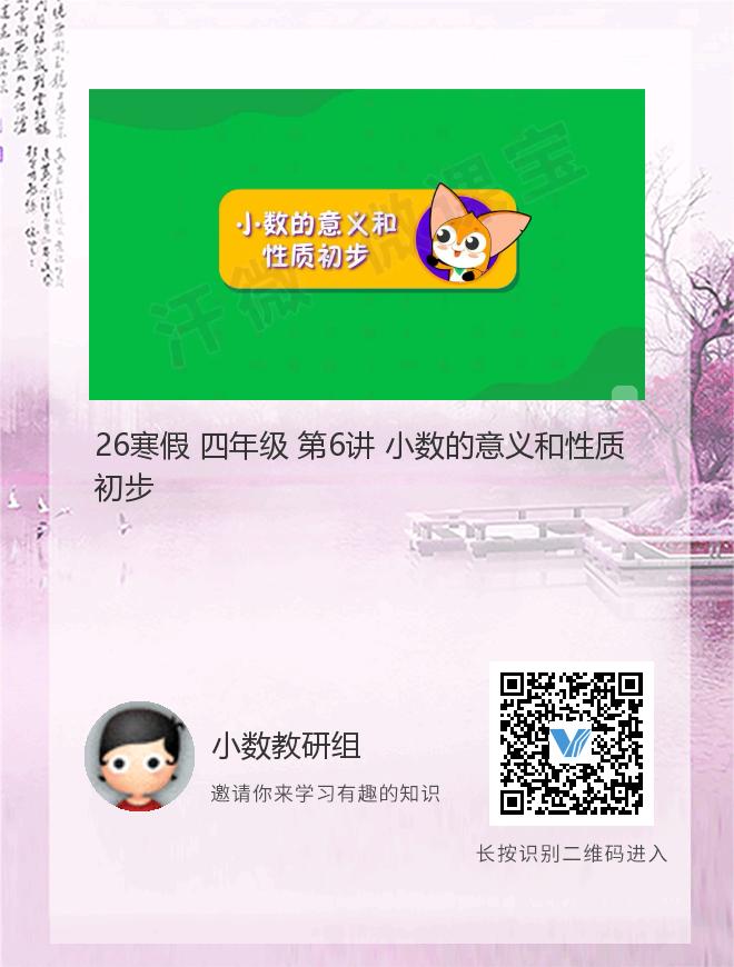 正在播放:26寒假 四年级 第6讲 小数的意义和性质初步
