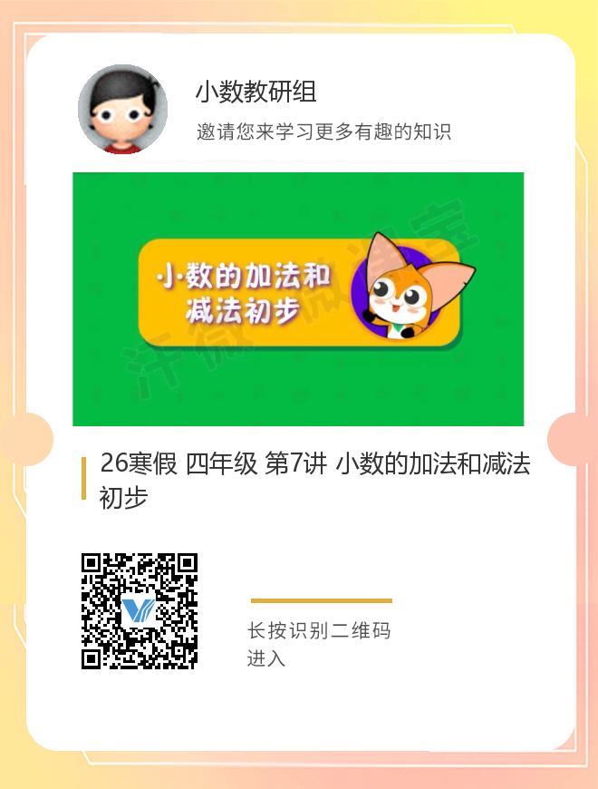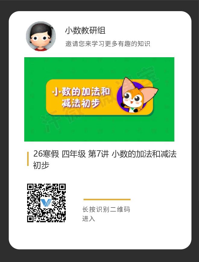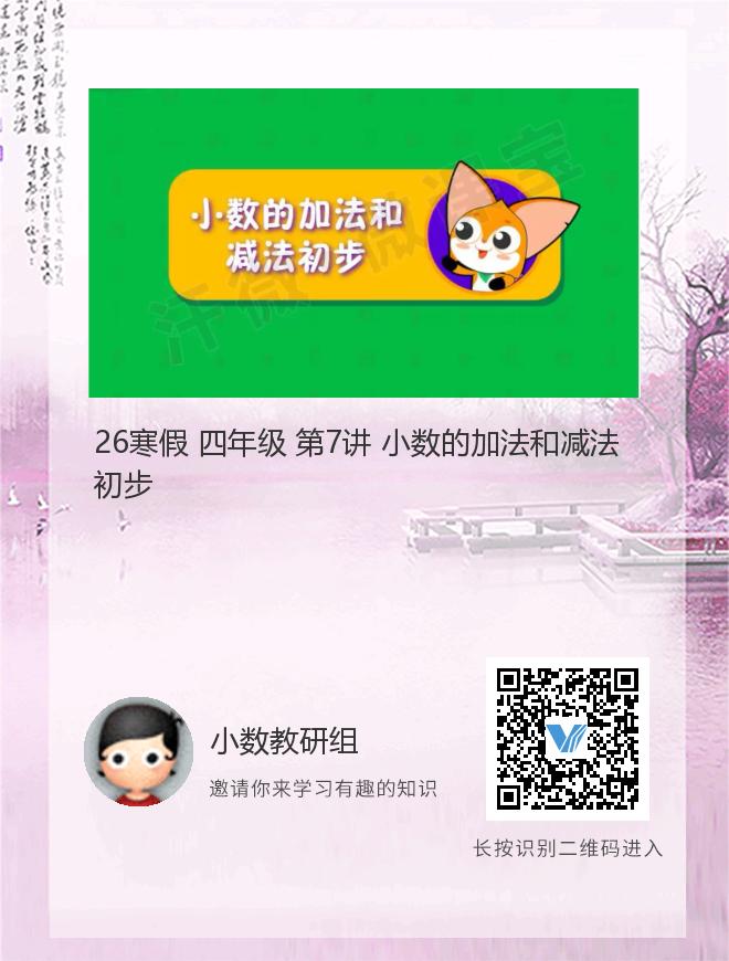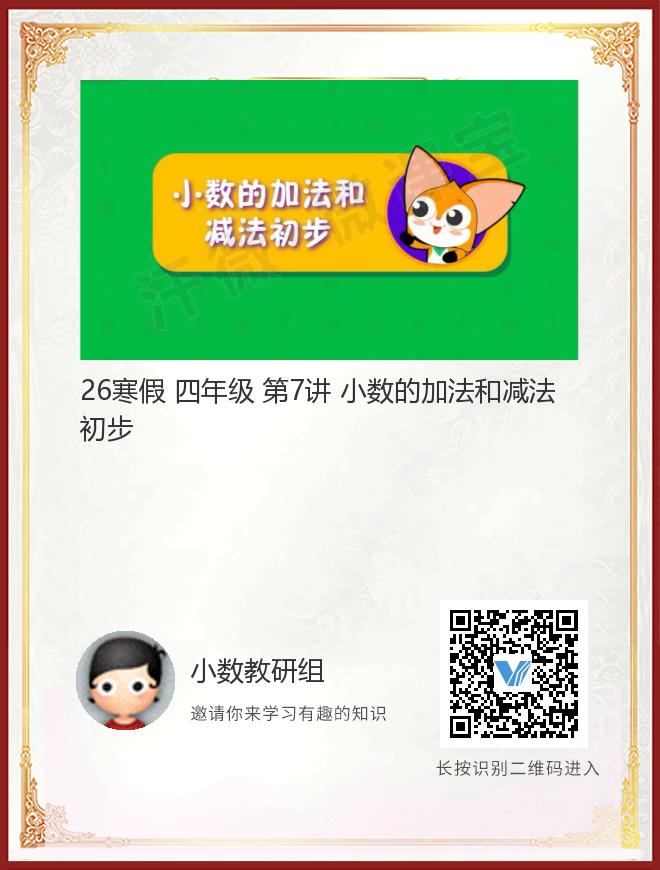 正在播放:26寒假 四年级 第7讲 小数的加法和减法初步