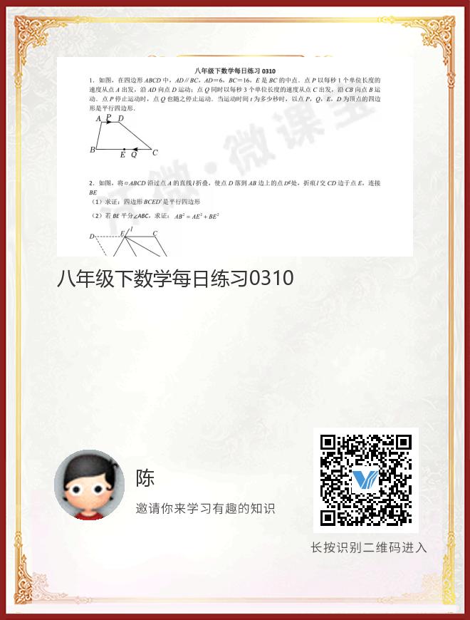 正在播放:八年级下数学每日练习0310