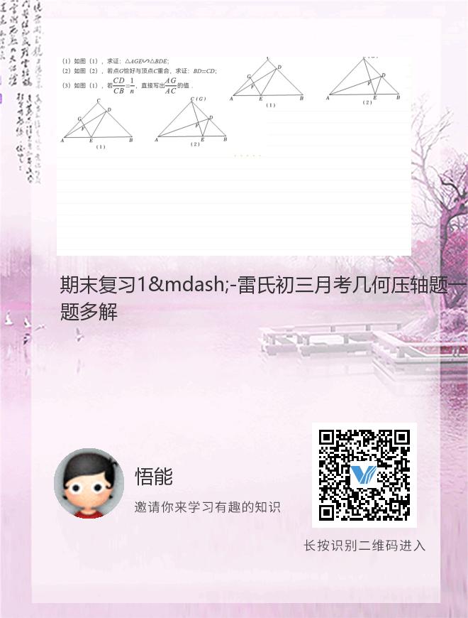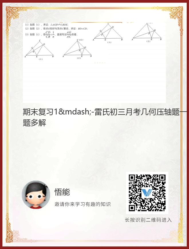 期末复习1—-雷氏初三月考几何压轴题一题多解